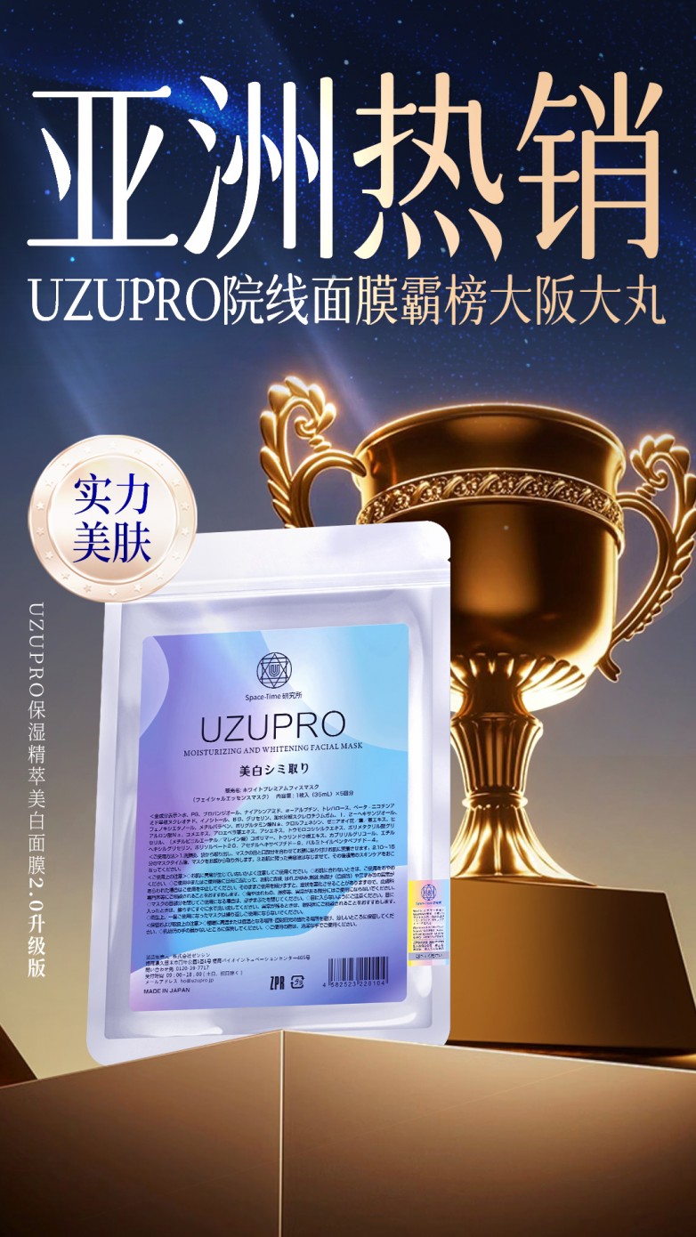 从日本大阪大丸百货的持续热销,到东南亚市场的口碑发酵,再到中国消费者的自发回购,UZUpro用实力证明:真正的日系顶流,从来都靠效果说话。如果你也想花小钱享受院线级护肤体验,这款横扫亚洲的爆款面膜,绝对值得闭眼冲!